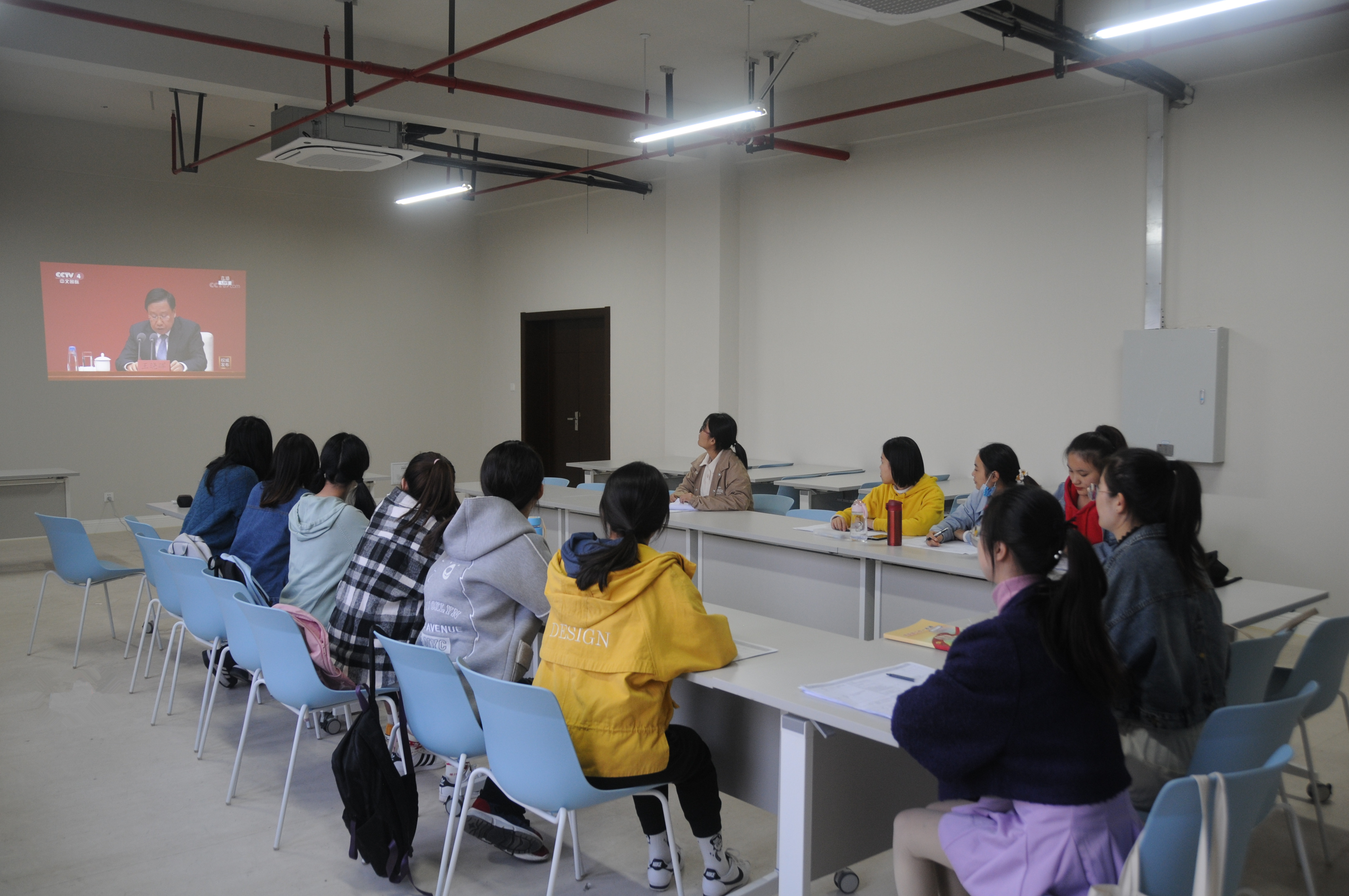 会上,全体学生党员集中观看了《中共中央关于十九届五中全会首场新闻发布会特别报道》,学习了《中国共产党第十九届中央委员会第五次全体会议公报》。焦洁庆结合相关媒体报道,重点解读了全会公报中一些新的表述以及其释放的未来中国发展的重要信号。她指出学习、理解好党的十九届五中全会精神,有助于青年更好地将个人理想融入时代主题、汇入复兴伟业,希望全体党员能深入细致研读、体会会议精神,并结合个人实际思考自己能为国家远景目标的实现做出什么贡献。