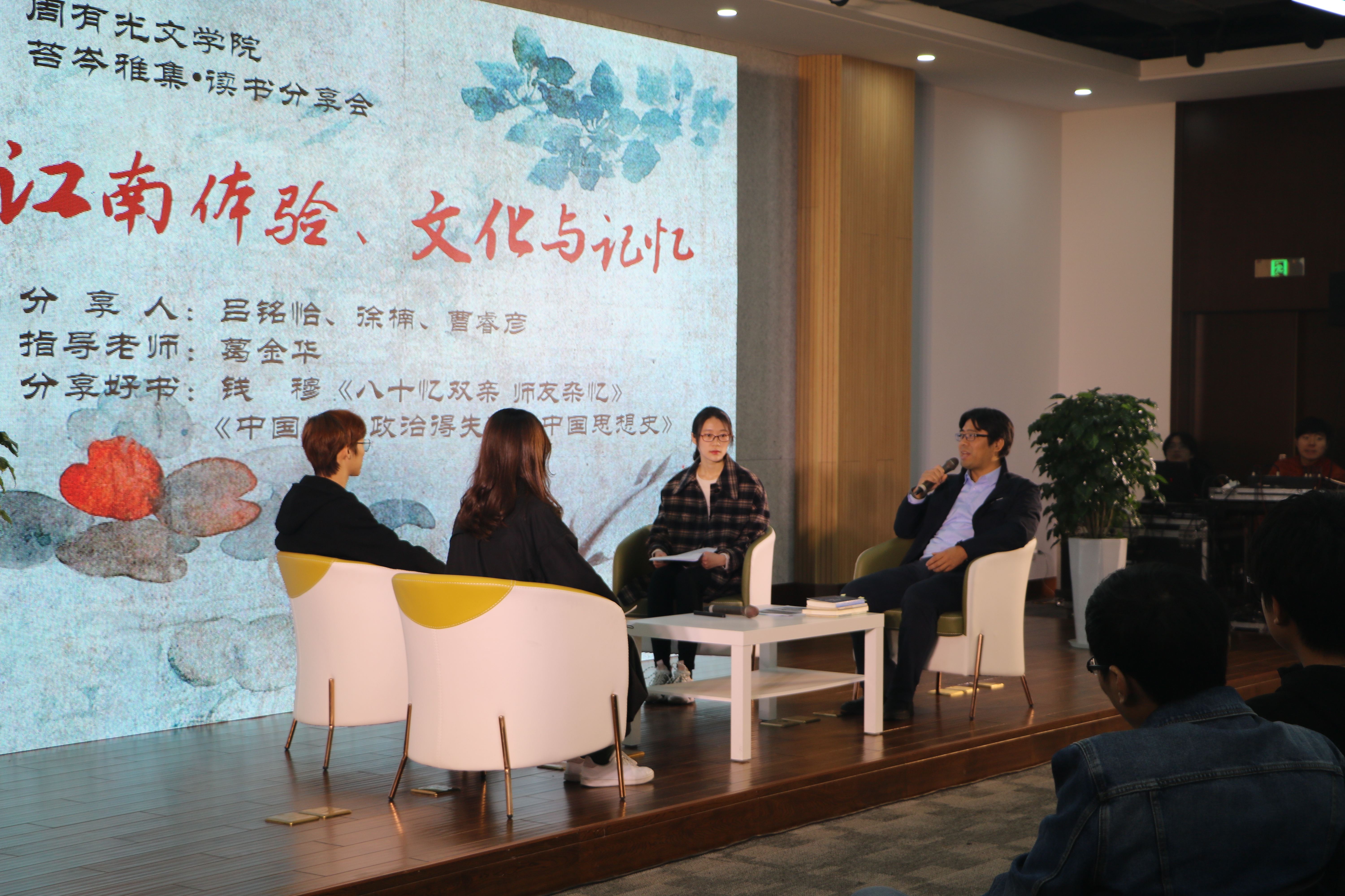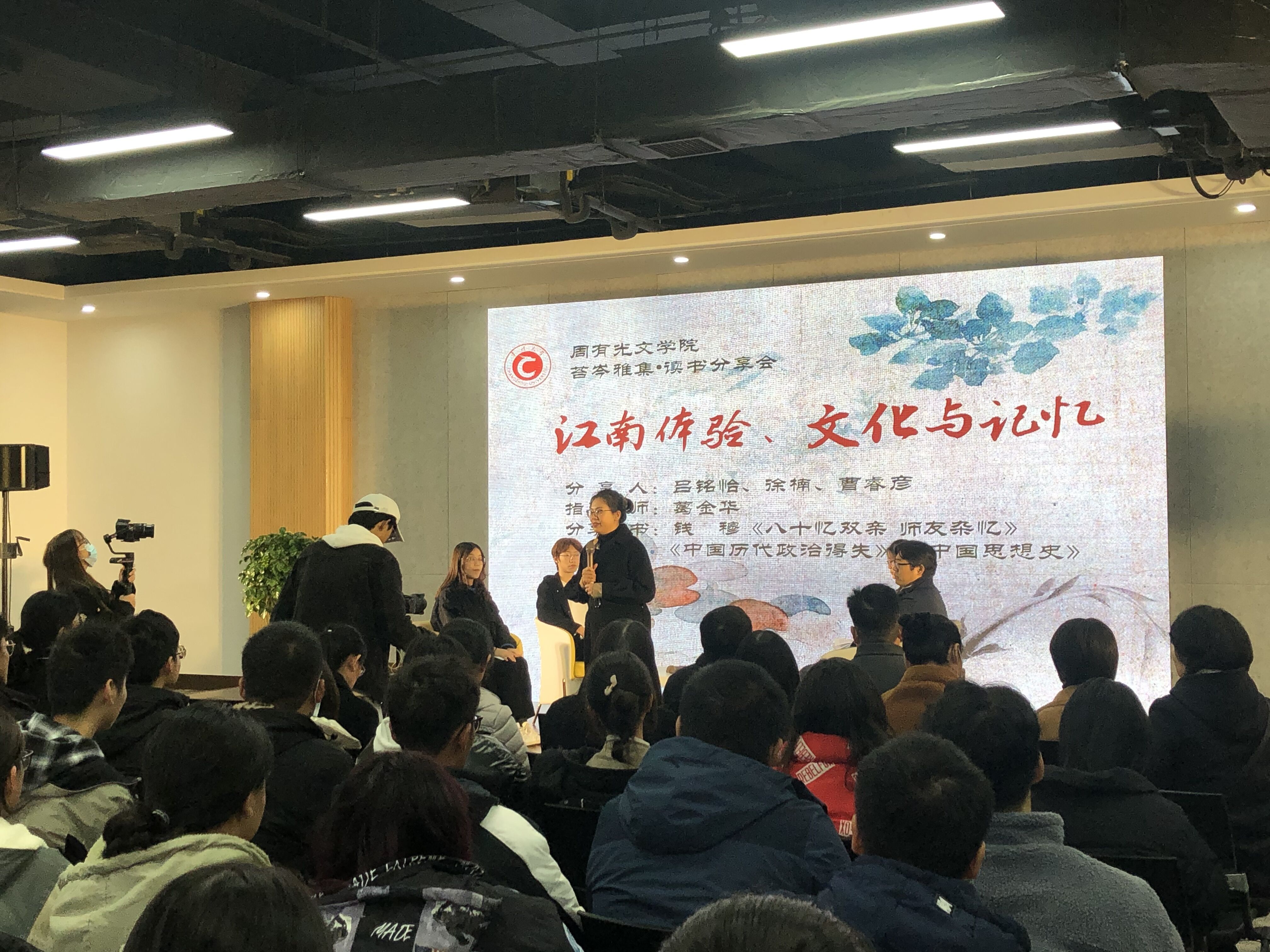 12月2日下午,88篮球直播 苔岑雅集·读书分享会在立言楼4楼报告厅顺利举行。本次读书分享会主题为“江南体验、文化与记忆”,由学院副院长葛金华老师带领三位同学分享读书心得,分享书目为钱穆先生的《八十忆双亲 师友杂忆》、《中国历代政治得失》、《中国思想史》。会议由院长助理、中文系主任王丹老师主持,学院全体教师及2020级学生参加。