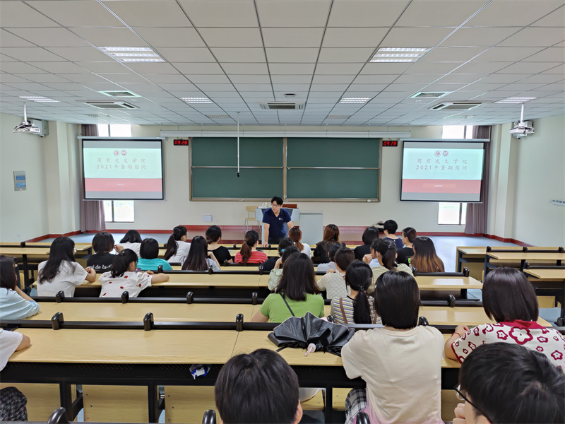 首先,焦洁庆亲切询问了同学们近期在学校生活、考研备考、项目备赛等方面的情况,对同学们暑期坚持留校表示了肯定和鼓励,勉励同学们要充分利用好假期宝贵学习时间,结合自身实际确立目标院校,明确职业规划,同时注意劳逸结合,保持乐观心态,做好防疫消暑工作。