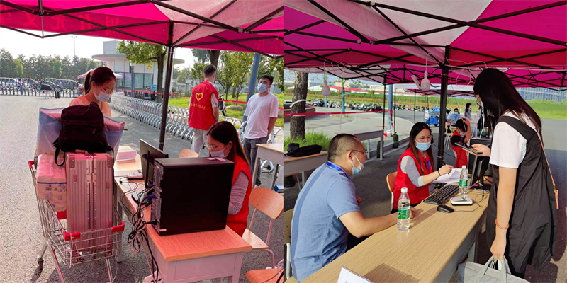 志愿者们分工明确,各司其职,按照前期培训要求做好各项工作。工作过程中志愿者们不畏炎热的天气与突如其来的大雨,热情地为同学们服务,逐一检查入校学生的健康码、行程码以及核酸检测报告,进行返校数据登记,同时给专转本新生分发校园一卡通、宿舍入住单以及防诈宣传手册,保障全体学生安全、有序、快捷返校或报到。在学校、学院领导的组织安排下,在志愿者与党员代表的共同努力下,学院学生返校报到工作顺利完成。