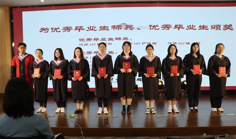 最后,在汉语182班罗明清同学的《感谢我们曾经来过》歌声中,毕业典礼圆满落幕。