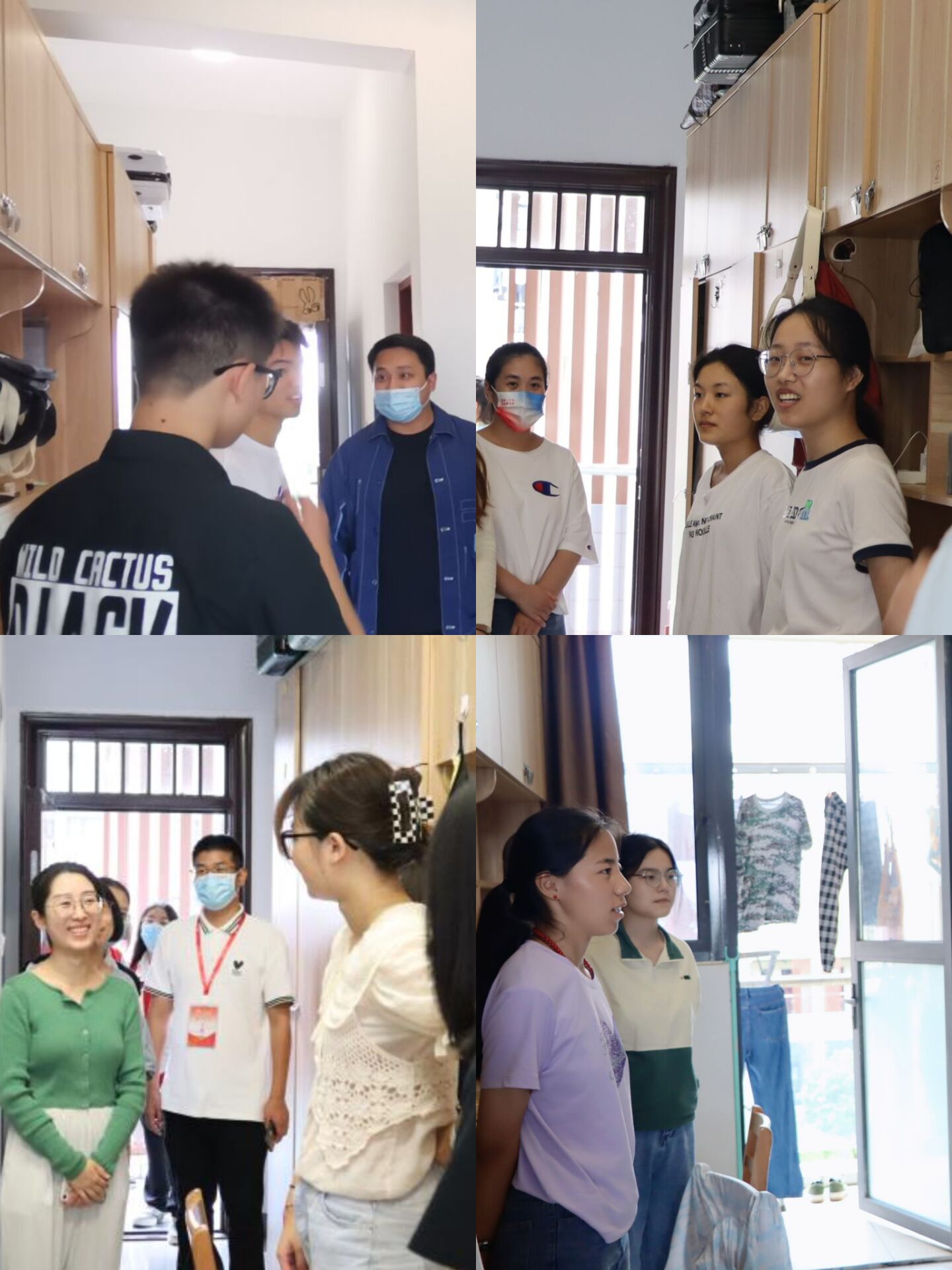 为及时了解新生进校后的整体情况,帮助他们尽快适应新环境,9月15日、9月17日下午,88篮球直播 党总支书记焦洁庆、院长葛金华、院长助理董文康、新生班主任储小静、薛欣欣、刘磊、王春晓、学工办主任张燕红以及辅导员一同前往新生宿舍,为他们带去学院的问候。
