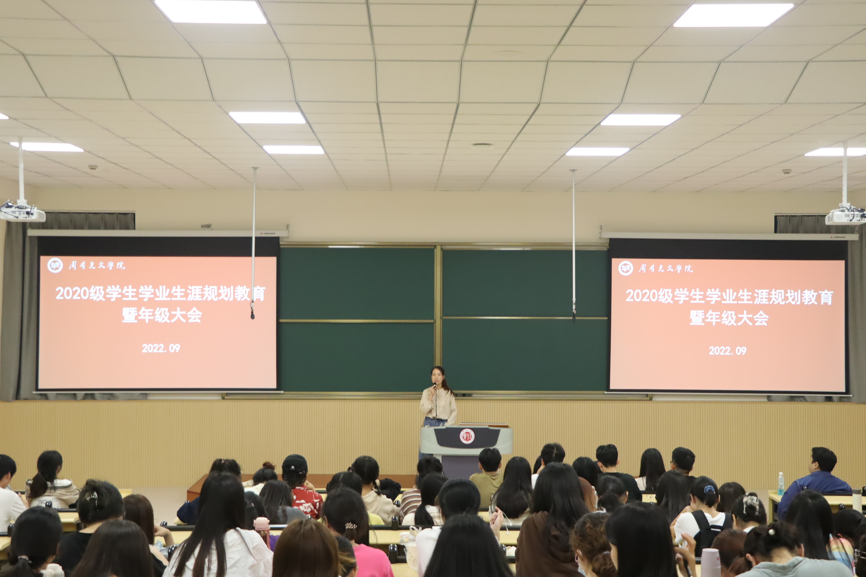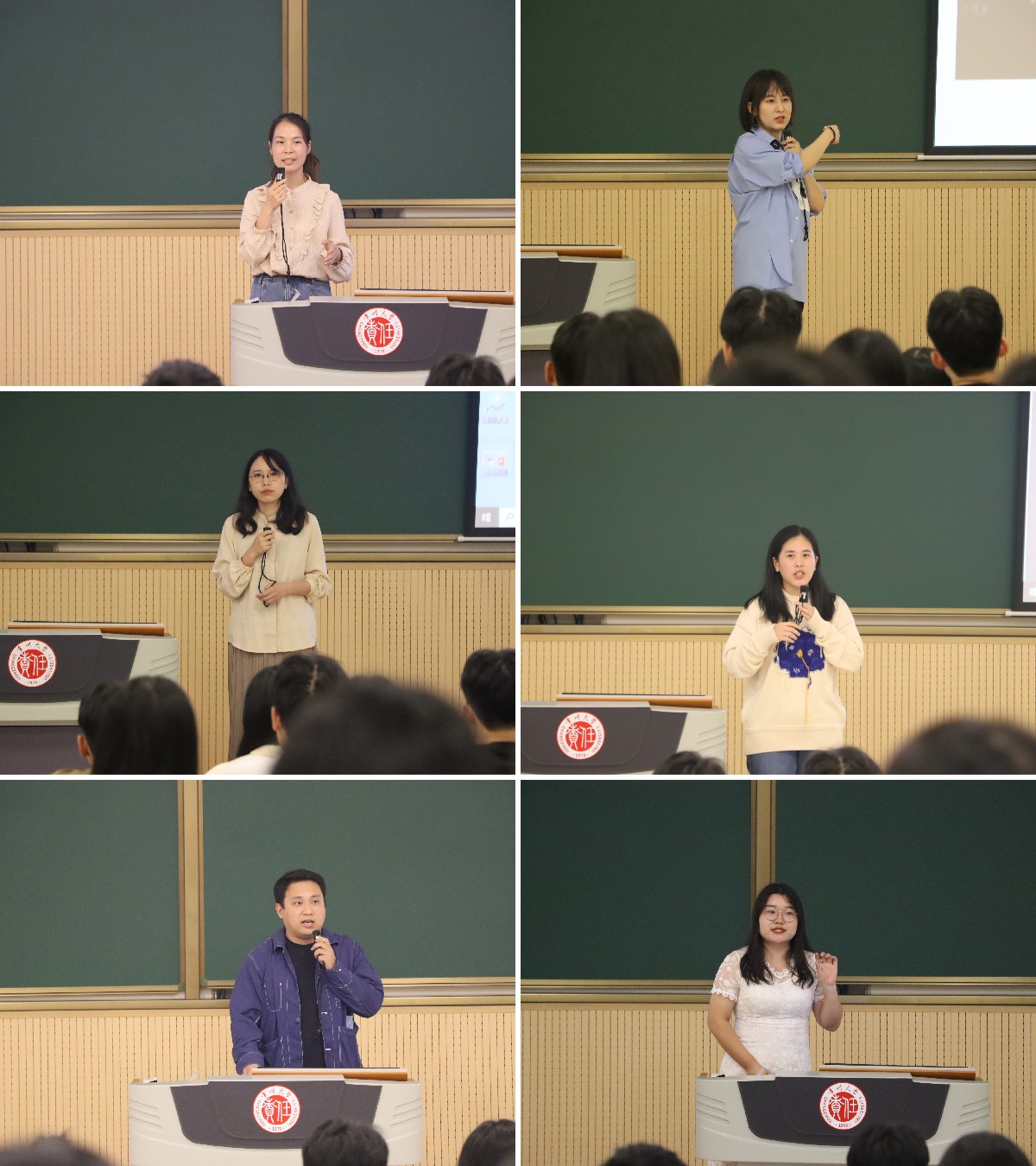 活动中,张燕红老师指出大三学年是整个大学生涯最为关键的一年,在严峻的就业形势下,同学们要保持平稳的心态,注重技能提升,结合自身具体情况做出正确的规划和选择;董文康老师以“十年”为主题分享自己的留学经历,她告诉同学们要养成保持交流、持续阅读的良好习惯,期望同学们无畏改变,敢于跳出自己的舒适圈;蒋碧薇老师提到迷茫这个词似乎是大学生无法摆脱的标签,作为当代大学生要善于把握资源、珍惜机会,多向老师和学姐学长请教成功经验;王春晓老师结合她在同学们之间做的生涯规划大数据调研,建议大家理性客观地分析自身能力并根据实际情况来选择目标院校和专业;刘磊老师根据就业调查报告分析了疫情影响下大学生的就业情况,指出伴随着大学生毕业人数逐年增加,大学生慢就业现象愈发严重,考研报考率逐年升高,就业和考研形势严峻;周艳敏老师结合汉语言文学专业特点为同学们提出复习、备考以及择校的意见和建议。