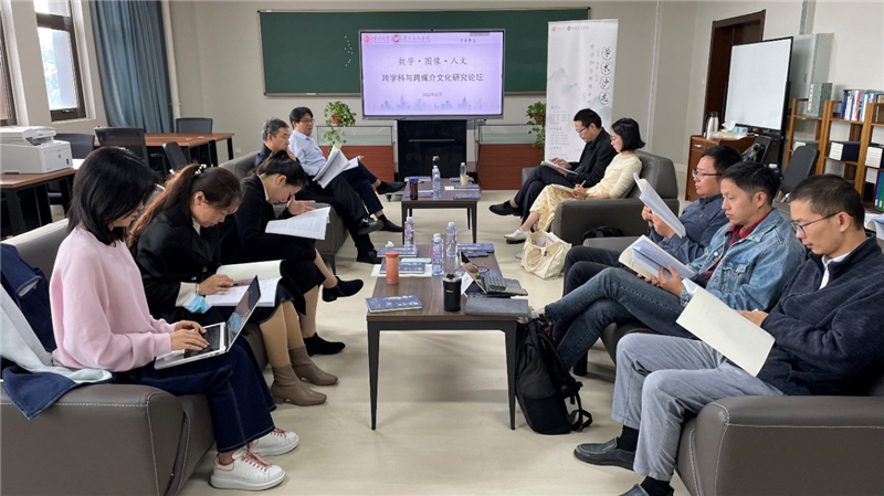 11月9日,篮球直播线上看 本学期首场青年教师学术沙龙“数字·图像·人文:跨学科与跨媒介文化研究论坛”,在立言楼351江南文化研究中心成功举办。南京艺术学院教授叶康宁和篮球直播线上看 院长葛金华、边利丰教授、周凌枫副教授出席活动,并担任论坛评议嘉宾,蒋欧悦等7位青年教师分别围绕论坛主题作了报告,学院近10位中青年教师参与活动,王海峰老师主持活动。