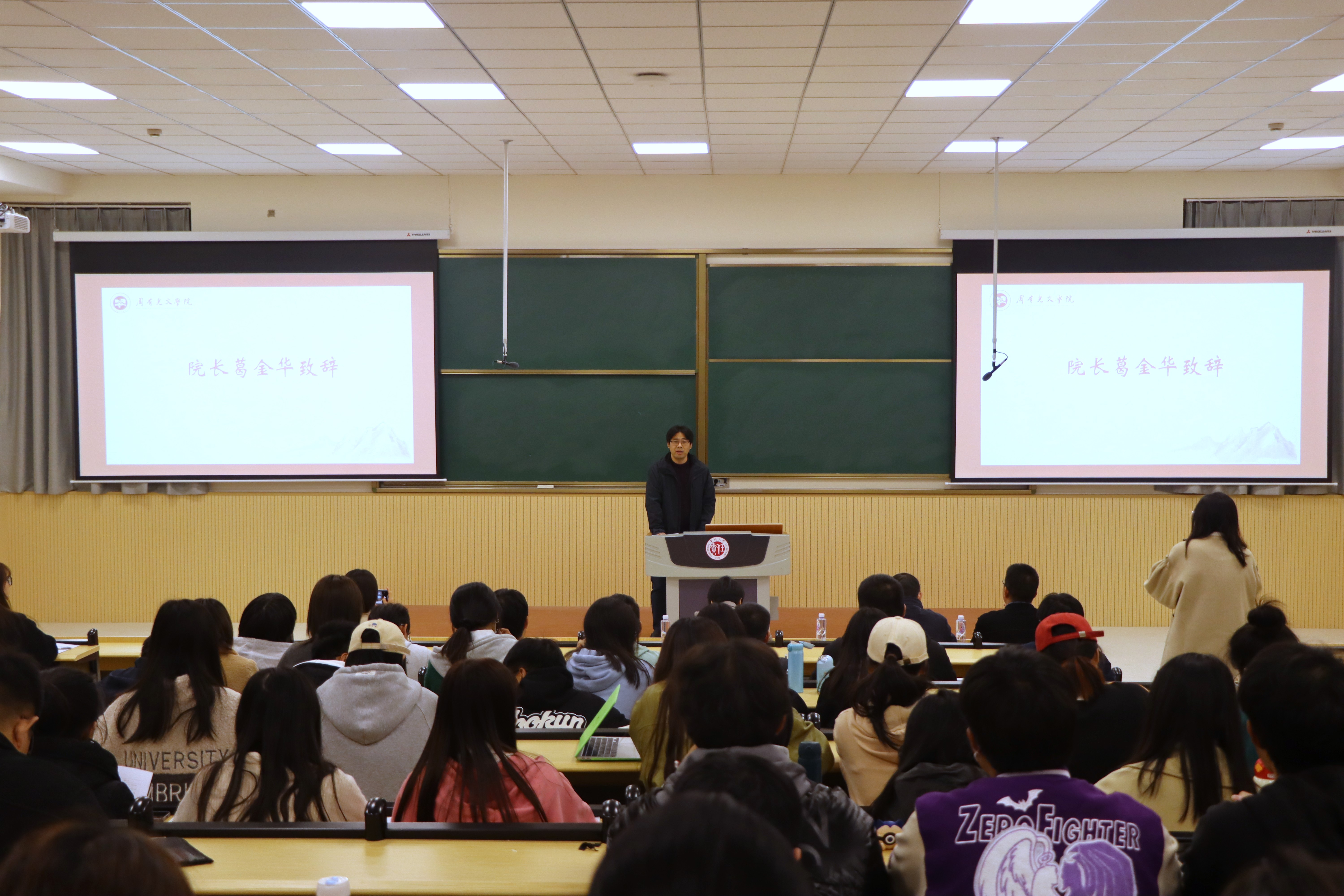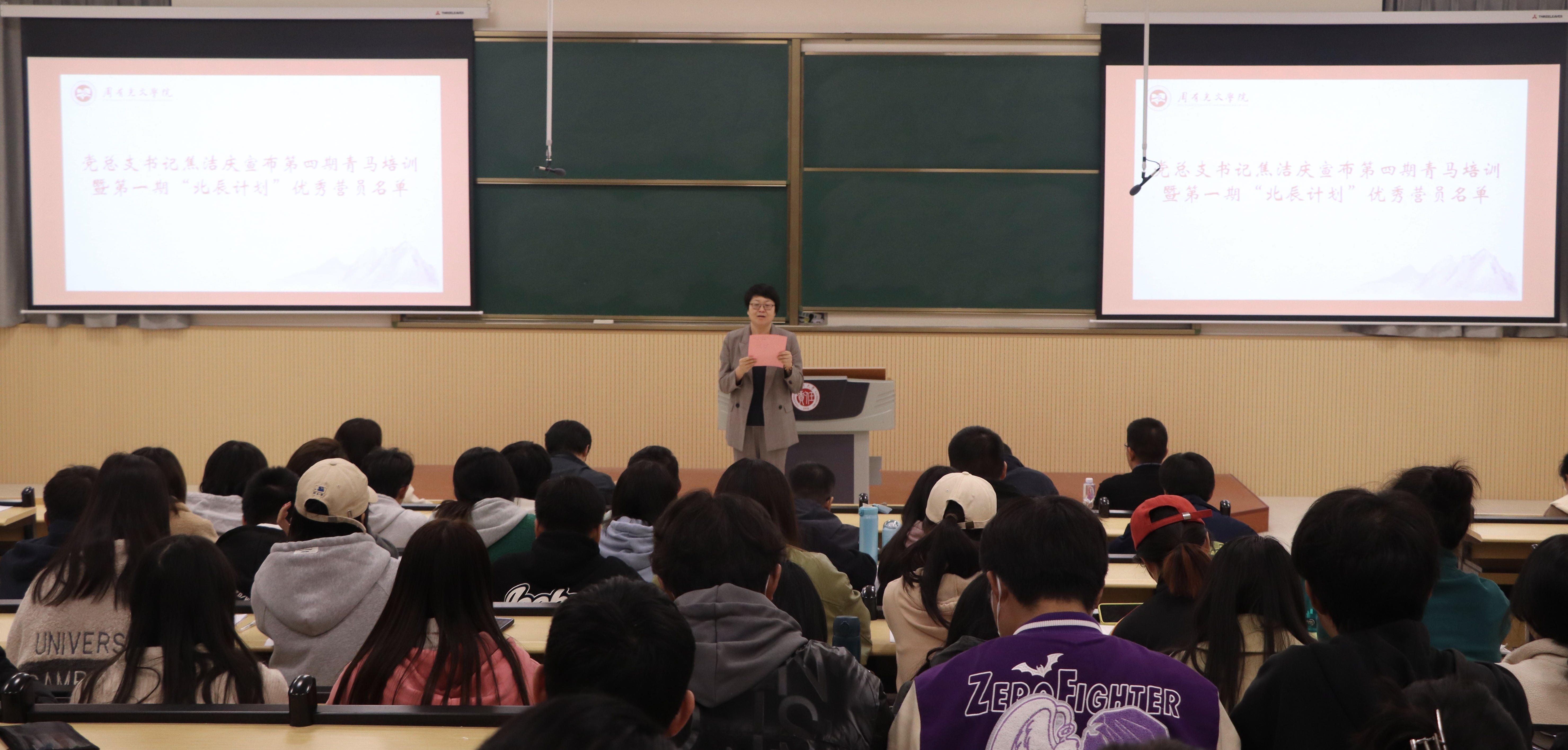 11月16日晚,“铸魂育人向未来,共绘文院新蓝图”——88篮球直播 第五期青马培训暨第三期“北辰计划”学生骨干训练营开班仪式于立功楼一阶顺利举行。院党总支书记焦洁庆,院长葛金华,院长助理黄杭西、董文康,辅导员程向君,史良法学院研究生、校团委兼职学生副书记陈醉应邀出席。学工办副主任张燕红主持开班仪式,88篮球直播 团委学生会全体成员、20、21、22级各班班委参加培训。