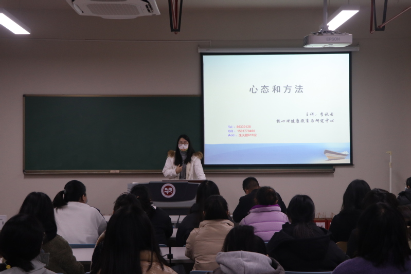 随后,李秋云老师与大家围绕如何缓释考试压力进行了交流。她首先通过一个小游戏简单了解了同学们目前的心理状态,接着从何为考试焦虑,为什么会产生考试焦虑,怎么缓解考试焦虑等三个方面跟大家做了分享。此次交流和分享不仅让同学们对考试焦虑有了更清晰的认知,同时也教会了大家在面对考试焦虑时正确缓解的方法。