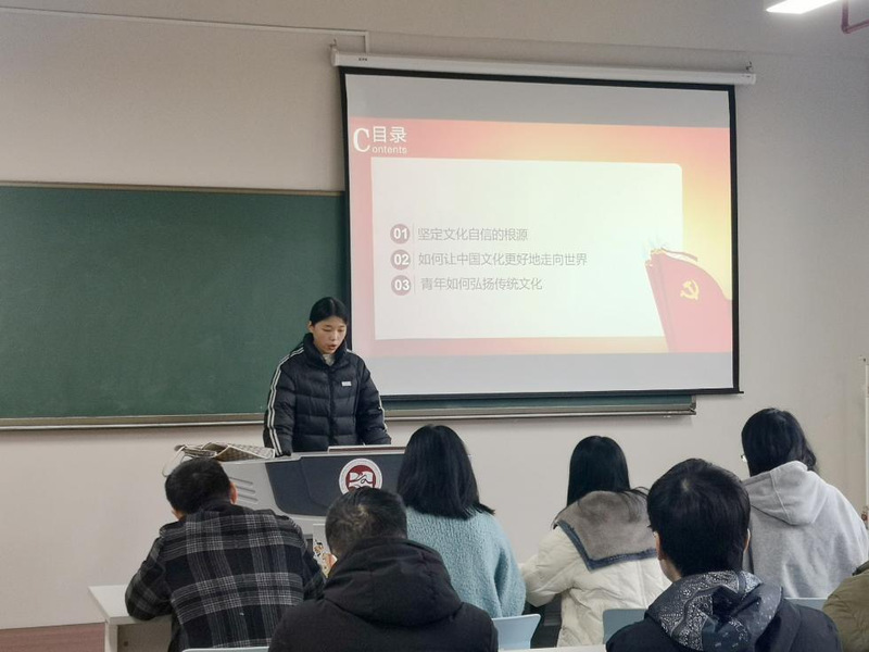 为深入学习贯彻党的二十大精神,提高学生党员思想认识,坚定传统文化自信,凝聚文化发展共识,88篮球直播 学生党支部于2月28日上午开展了“赓续中华文脉,坚定文化自信”主题党日活动。本次活动由学生党支部副书记何薇主持,全体学生党员参加。