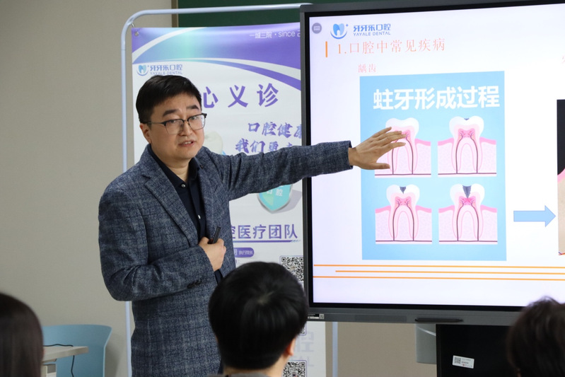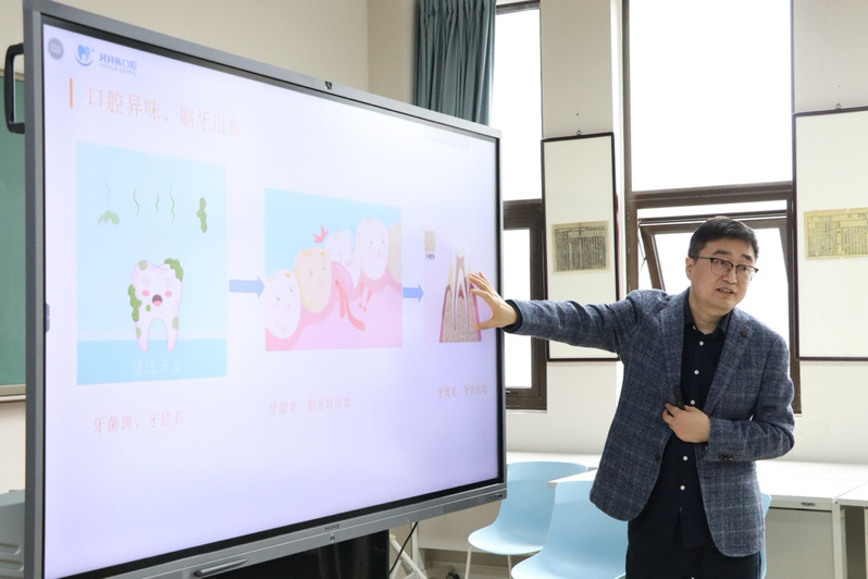 分工会邀请常州牙牙乐口腔医院的赵富医生为教师们做了生动的口腔护理讲座,赵医生重点对日常生活中大家错误的洁牙护齿方式进行了纠正,并与老师们分享了如何正确刷牙、选择牙刷、牙膏以及如何维护牙刷、义齿等口腔健康小常识。接着,医生团队为教师们进行了口腔检查,针对每个教师的不同情况,为她们提供了不同的诊疗方案。