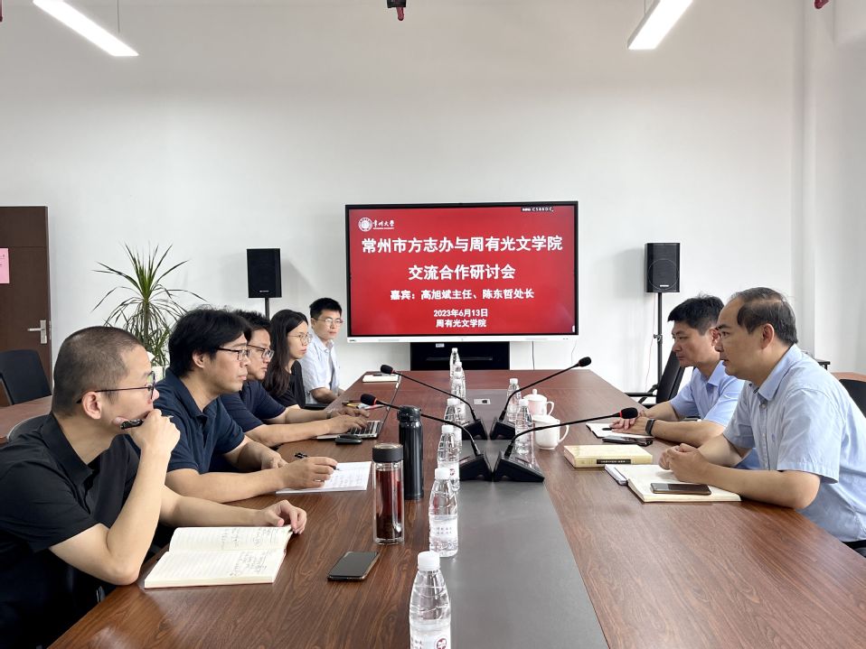葛金华院长首先对常州市委党史工委、方志办领导一行的来访表示热烈的欢迎。并介绍了我校江南文化研究中心的发展历程和特色成果,以及学院特色科研中与城市文脉相关的项目、人才和成果情况。也就“江南文化丛书”首批成果进展情况作了介绍。双方通过研讨达成共识,认为只有通过更深、更实、更细的校地合作,才能实现校地融合发展和区域文化有效传承。
