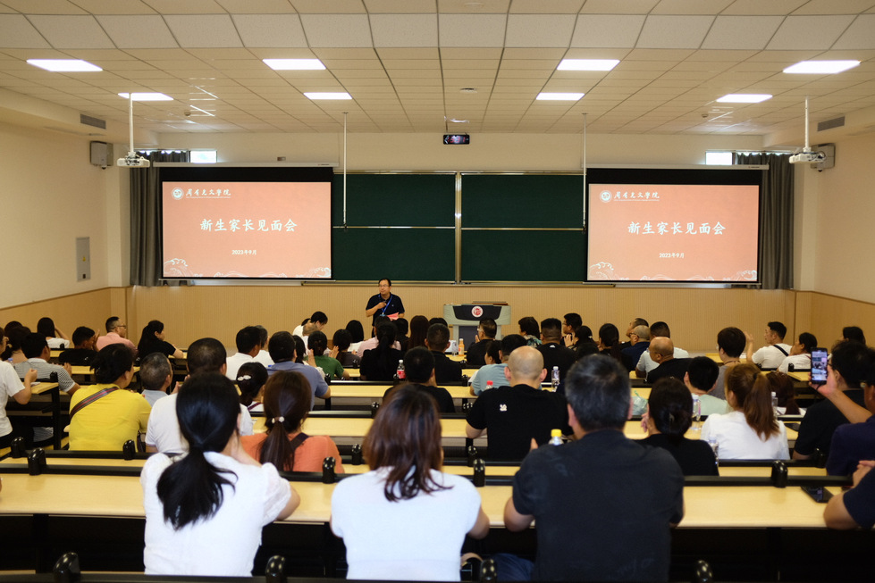 9月12日下午,篮球直播线上看 于立功楼二阶举办2023年新生家长会。党总支书记焦洁庆、院长葛金华、专业负责人付用现、新生班主任、学生工作人员、全体新生家长参会,会议由学院党总支副书记颜黎光主持。