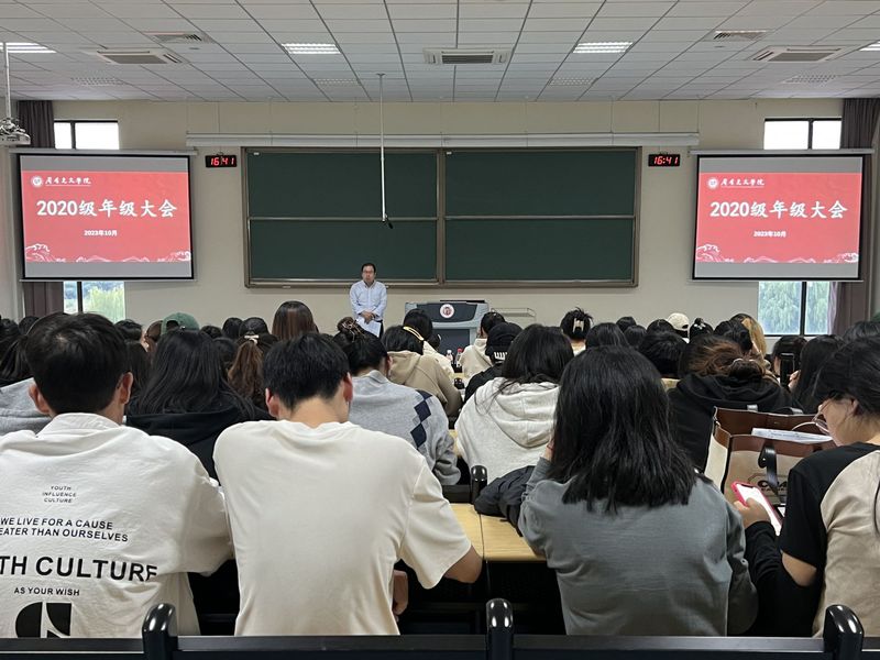 10月25日下午,篮球直播线上看 在立德楼六阶召开2020级学生年级大会。本次会议由党总支副书记颜黎光、学工办主任张燕红担任主讲,2020级全体学生参加。