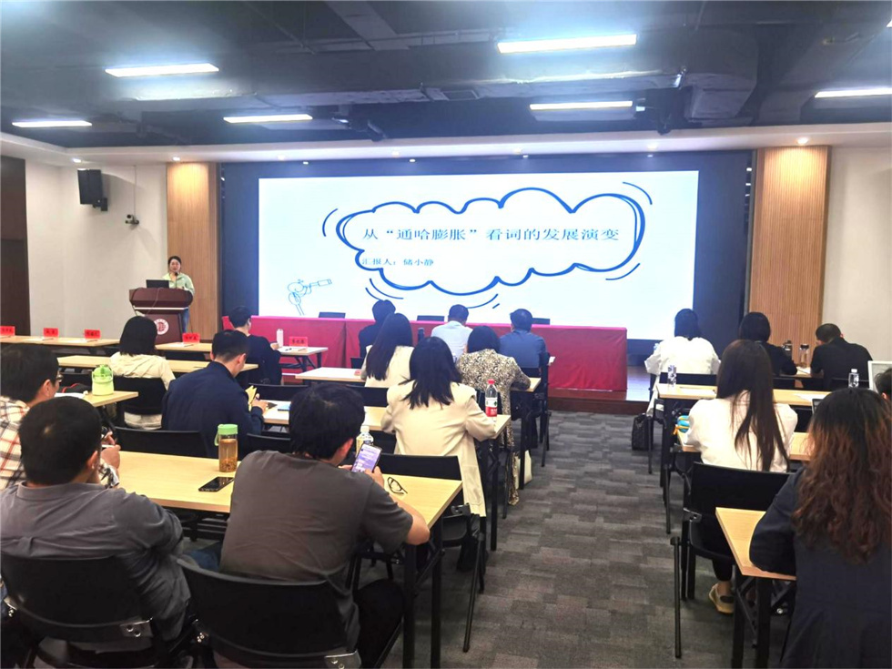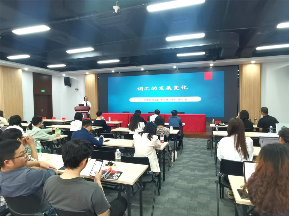 王丹、储小静师徒围绕《现代汉语》中“词汇的发展变化”一节进行授课。王丹老师从新词的产生、旧词的隐退和复出、词义的演变、拓展应用四方面揭示词汇发展变化的规律,并结合考研例题、研究前沿做了知识延展与启迪思考;储小静则通过分析“通哈膨胀”这一语言学现象背后的原因,阐述了语言学相关概念,展示了表达方式的迭代和词语语义的迁移变化。