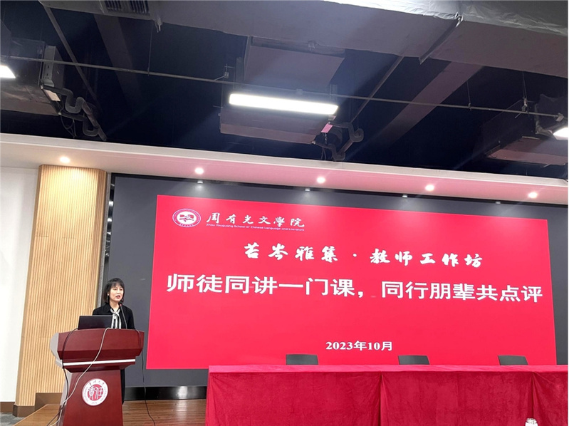 10月25日下午,88篮球直播 于西太湖校区立言楼458会议室举办“师徒同讲一门课,同行朋辈共点评”苔岑雅集•教师工作坊活动,外国文学与文艺学教研室葛金华、蒋欧悦,语言学教研室王丹、储小静两对师徒进行教学演示。学院全体党政领导和教职工参加活动。活动由院长助理董文康主持。