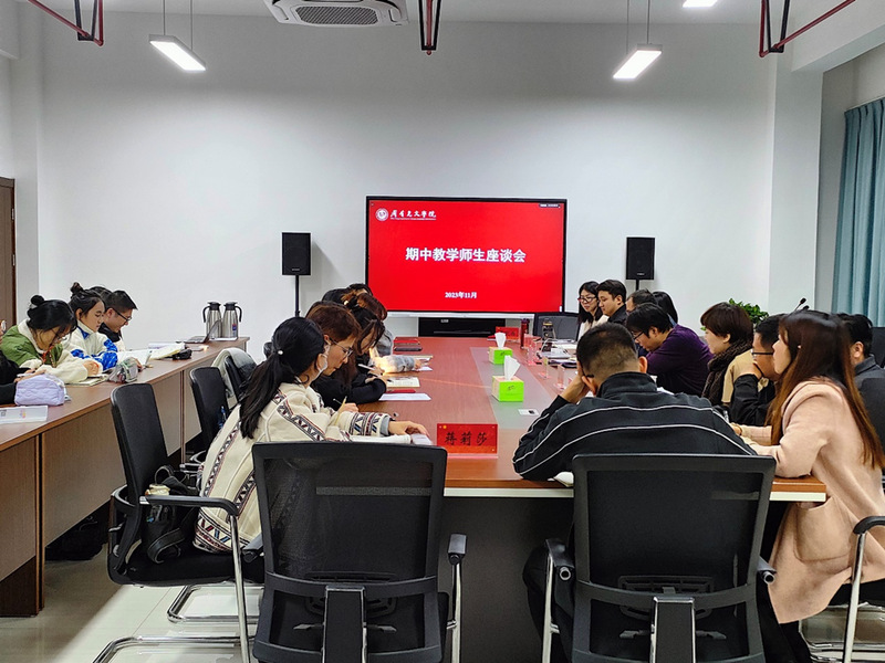 为加强教学过程管理,了解学生学习生活,11月15日下午,88篮球直播 于立言楼334会议室召开期中教学师生座谈会。座谈会由院长助理董文康主持,院长葛金华、副书记颜黎光、校督导郭明静、院长助理黄杭西、各教研室主任、各年级辅导员及班级学习委员参会。