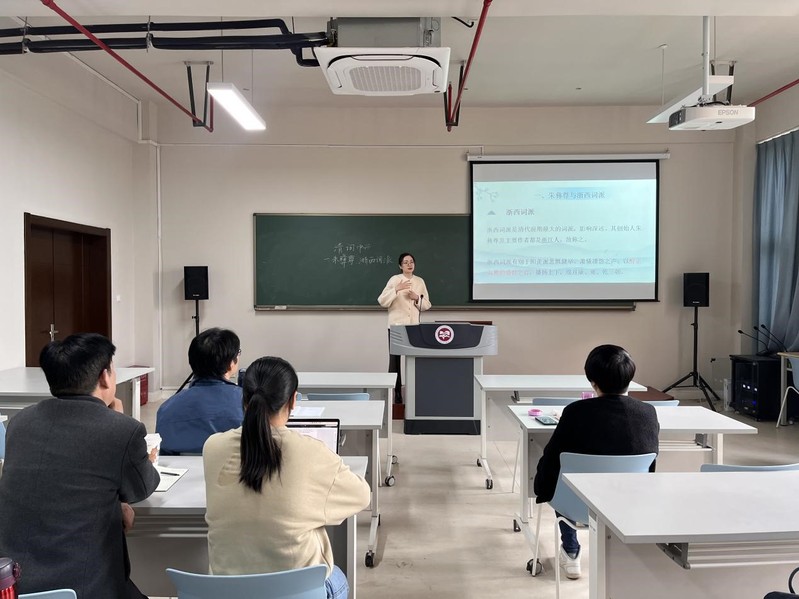 11月17日下午,88篮球直播 分工会于西太湖校区立言楼342举办2023年度苔岑雅集•教师工作坊青年教师教学能力展演活动。古代文学教研室裔一老师、文艺学与外国文学教研室黄杭西老师进行教学演示。党总支书记焦洁庆、院长葛金华、院长助理董文康、分工会主席边利丰及全体专业教师出席活动,工作坊由院长助理董文康老师主持。
