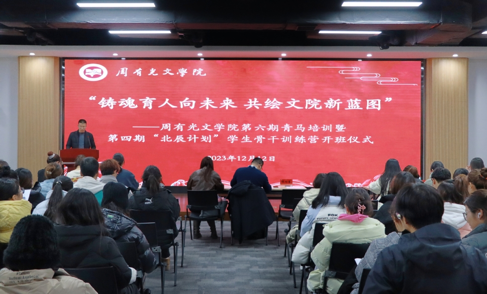 12月12日晚,篮球直播线上看 在立言楼458成功召开“铸魂育人向未来,共绘文院新蓝图”——88篮球直播 第六期青马培训暨第四期“北辰计划”学生骨干训练营开班仪式。党总支副书记颜黎光老师,学工办主任张燕红老师出席本次活动,团学工作负责人程向君老师主持活动,篮球直播线上看 团学骨干80余人参加活动。
