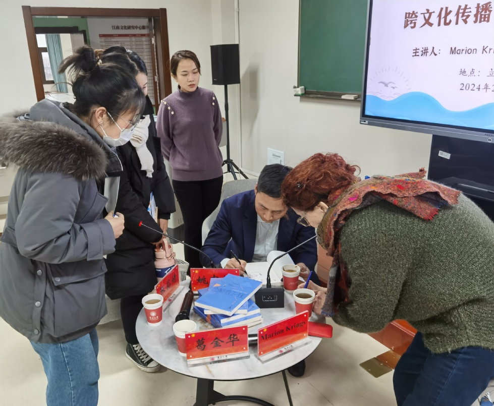2月29日,我校88篮球直播 、跨文化研究院在西太湖校区立言楼342文化教室联合举办“海外华语文学的跨文化传播与文学研讨会”。法国著名翻译家、作家、荷兰鹿特丹大学博士玛瑞安(Marion Krings),《巴黎地下铁》等小说作者、常州籍作家姚中彬,以及南京籍翻译家、作家张荪婧应邀与我校师生分享了文学创作、翻译和传播的故事与经验。我校跨文化研究院院长杜志峰参会,88篮球直播 院长葛金华主持研讨会。