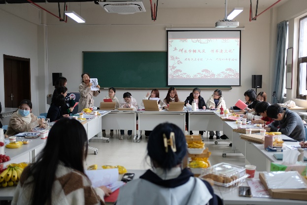 分工会于3月8日下午在立言楼342举办了以“展巾帼风采 传非遗文化”为主题的妇女节活动。学院教师靳瑞芳应邀进行指导,党总支书记焦洁庆、院长葛金华、工会主席边利丰以及全体女教师和学生党员代表共同参与本次活动。