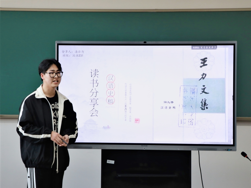 3月20日,由篮球直播线上看 主办的苔岑雅集·读书会于立言楼351成功举办。本次读书会以“来,参观巴别塔”为主题,旨在带领同学们走进语言学的世界,探索语言的神奇奥秘。语言学教研室胡静书老师指导的李欣燃、韩箫蔓、胡紫娴、潘亦为、崔吴彤五位同学为我们分享了五本语言学好书。21、22级的部分同学参与了本次读书会,刘磊老师主持会议。