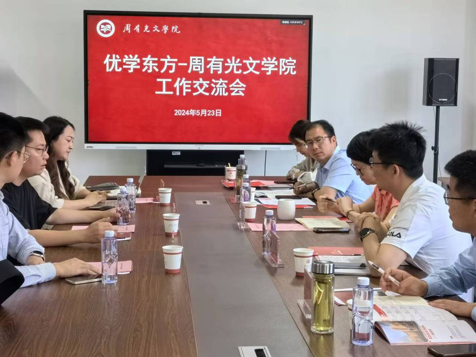 5月23日上午,88篮球直播 与优学东方于立言楼334召开工作交流会。88篮球直播 党总支书记焦洁庆、外国语学院党委副书记丁宪成、88篮球直播 党总支副书记颜黎光、学工办主任张燕红、辅导员程向君、优学东方校长金乐、职能总监于海阔、留学负责人张帆共同参加了会议。