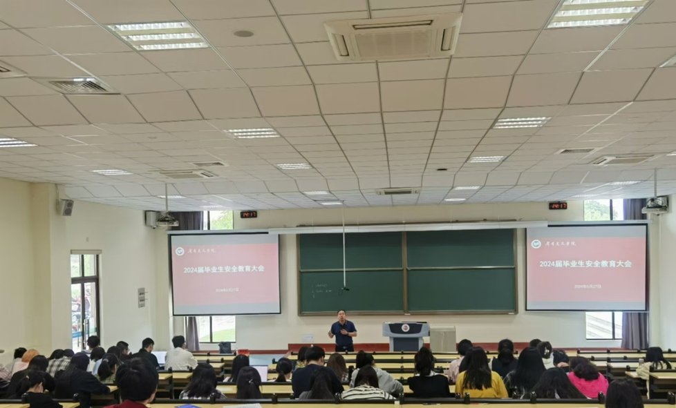 为增强毕业生的安全意识,5月27日下午,篮球直播线上看 在立德楼二阶召开2024届毕业生文明离校暨安全稳定教育会议。会议由学院党总支副书记颜黎光主讲,学工办主任张燕红和2024届全体毕业生参加会议。