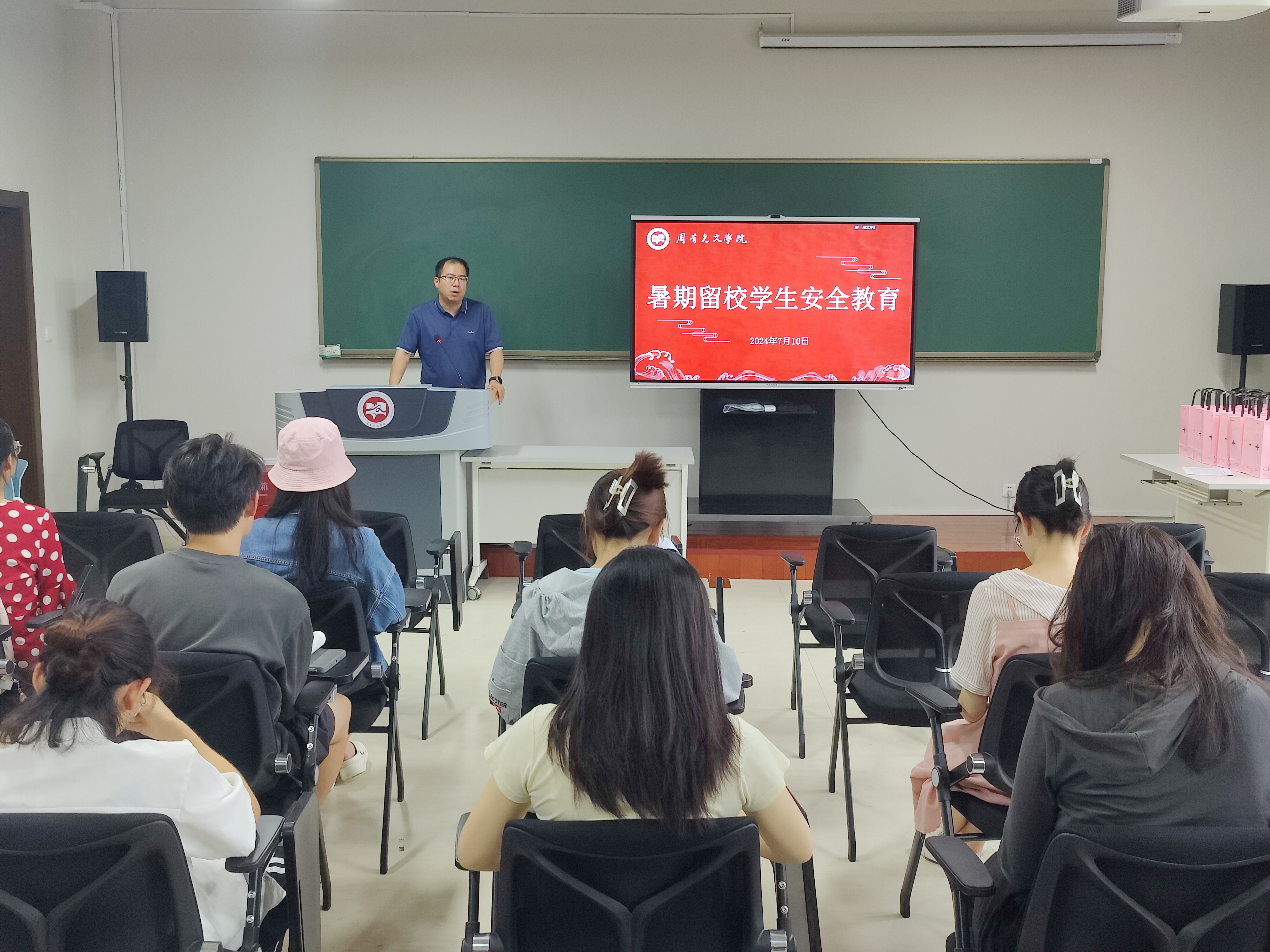 7月10日上午,篮球直播线上看 在立言楼342会议室召开了暑假留校学生安全教育会议。学院党政领导出席会议,辅导员老师及全体留校学生参加会议。会议由党总支副书记颜黎光主持。
