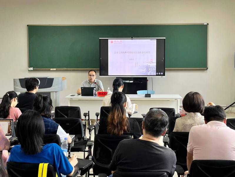 9月18日下午,篮球直播线上看 在立言楼342室成功举办“苔岑雅集·周有光文化大讲堂”第四十四期学术讲座。复旦大学历史学博士后,常州大学马克思主义学院副教授、硕士生导师胡勇军应邀来院作了题为“历史空间数据可视化与江南社会史研究”的学术讲座。篮球直播线上看 党总支书记焦洁庆、院长葛金华、副院长陈鸿出席讲座,各教研室三十余位教师参加讲座。陈鸿副院长主持讲座。