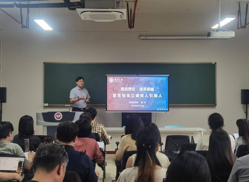 薛冰以《勇担责任、追求卓越,自觉担当立德树人引路人》为题,围绕意识形态的定义、高校意识形态工作的重要性、意识形态工作的主要关注点三方面,结合高校意识形态领域的真实案例展开了详细阐述。他指出,意识形态工作是党的一项极端重要的工作,事关党的前途命运、事关国家的长治久安、事关民族凝聚力和向心力。我们必须坚定不移地贯彻党的二十大精神,筑牢国家意识形态安全的铜墙铁壁。薛冰着重阐述了意识形态工作的重点与方向,他表示,教师们应在理论武装、课堂教学、教材建设及文化建设等方面持续发力,坚决守好意识形态底线,切实维护教育领域政治安全。
