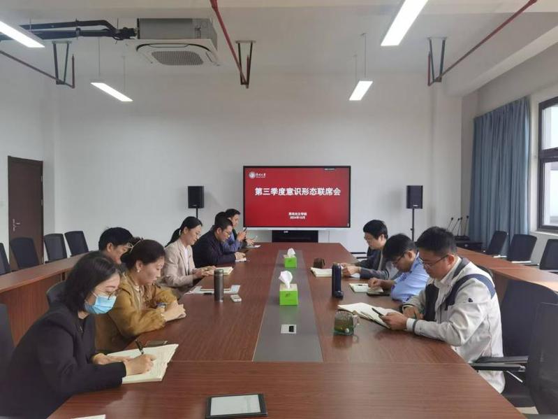 10月23日上午,第三季度意识形态工作联席会在立言楼334会议室召开,学校意识形态工作联席会成员参加会议,会议由党总支书记焦洁庆主持。