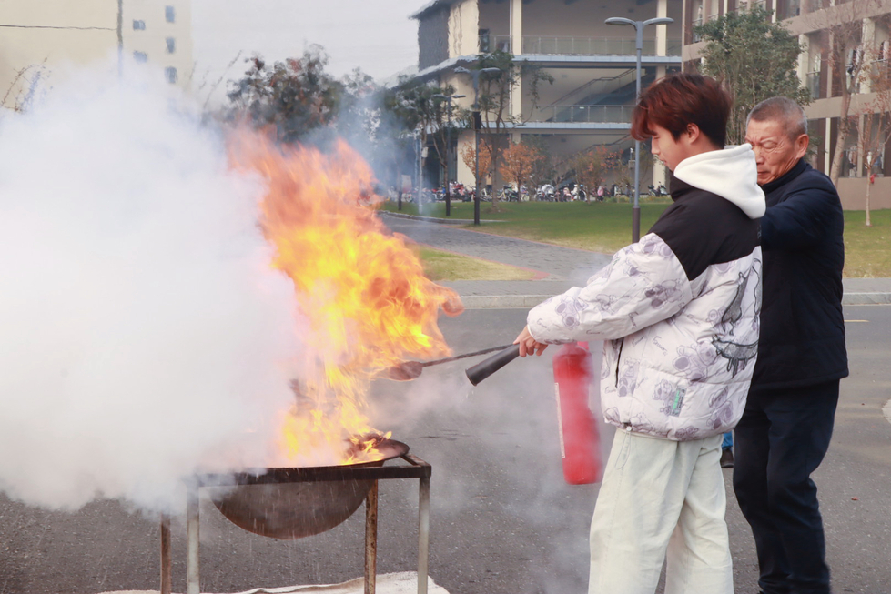 活动中,马壮依据消防安全典型案例,从火灾危害、火灾预防、火灾应急处理、火灾逃生自救要点等方面进行了安全知识教育,并现场展示了容易造成安全隐患的宿舍违禁物品。随后,他还详细讲解了灭火器的使用步骤及方法,并指导参加人员分组依次进行了模拟应急逃生、油盆灭火器灭火两个项目,整个演练过程组织严密、安全有序。