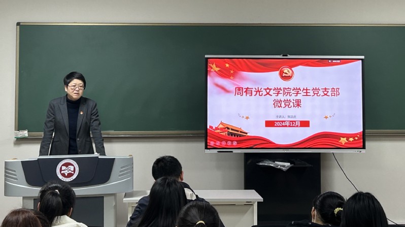 12月26日晚,88篮球直播 党总支书记焦洁庆于立言楼342以“铭记伟人精神,担当时代使命”为题为全体学生党员讲授党课。