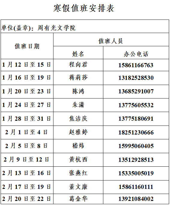 备注:请值班老师保持电话通畅,以便联系。