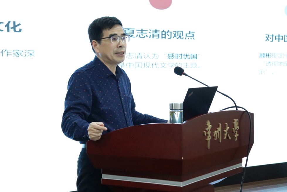 3月12日,上海外国语大学国际文化交流学院教授、博导杨四平先生应“苔岑雅集·周有光文化大讲堂”第四十八期邀请,在立言楼458为篮球直播线上看 师生作了题为“莫言小说塑造民间文化中国形象漫谈”的学术讲座。院长葛金华、副院长陈鸿、中文系主任贺与诤出席讲座,现当代文学、文艺学与外国文学教研室部分老师、全体大一学生参加讲座。葛金华院长主持讲座。