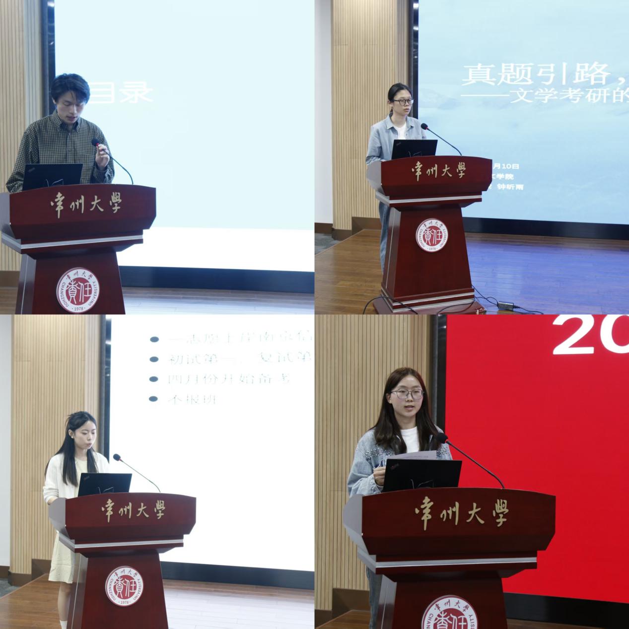 会上,教师们结合各自的研究方向和教学经验,系统介绍各专业的学科特性和考研要点。黄杭西分析了比较文学与世界文学专业的发展趋势,建议同学们在选择专业时要将个人兴趣和职业规划相结合。王风丽分享了考研复习策略,并针对古代文学方向提供详细的学习方法和时间管理参考。何霞强调构建现当代文学理论体系的重要性,指出在该方向的复习中要增加阅读和记忆的强度。刘磊深入剖析了语言学考研的整体形势,推荐了一系列专业教材和学术期刊,并讲解了该专业的复习方法、答题技巧等。