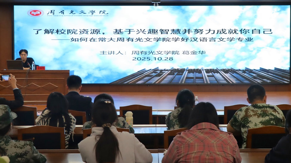 葛金华为全体2025级新生带来了一场内容丰富、意蕴深远的院史院情专题教育讲座。他以“了解校院资源,基于兴趣智慧并努力成就你自己——如何在常大88篮球直播 学好汉语言文学专业”为题,详细介绍了专业所属大类、学科体系、课程内容等,并就篮球直播线上看 汉语言文学专业的起源、学院发展历程、师资队伍、学科特色及发展规划进行了介绍。通过详实的史料与生动的故事,他将学院的“过去、现在与未来”详细阐述,使新生们对学院有了更为全面深入的了解,增强了新生作为学院一员的获得感与使命感。他还为新生们推荐了《史记》《数字交往论》《理解媒介》等多本书籍,鼓励同学们多读书、多思考、多写作,学会生产性学习、创作,努力成为一名“特别能写、能生产内容;特别能策划、能组织;特别有思想、有文化”的复合型人才。(通讯员/张燕红 审核/嵇炜)