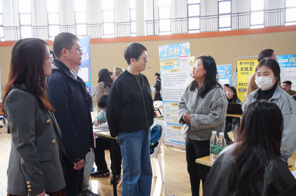 党委书记焦洁庆、副书记嵇炜、辅导员老师与参会企业代表进行了交流,了解当前行业用人需求。