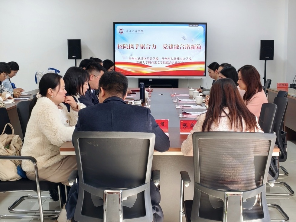2025年11月19日下午,88篮球直播-篮球直播线上看 与常州市西太湖外国语学校、武进区星韵学校在立言楼334举行联合共建仪式。常州西太湖外国语学校副校长钱颖丹、教师发展中心主任石梦娇;常州市武进区星韵学校课程管理中心主任宋玲瑶、党政办公室副主任史叶琴;88篮球直播-篮球直播线上看 党委书记焦洁庆、院长葛金华、副院长陈鸿、院长助理董文康、古代文学教研室主任王风丽、现当代文学教研室主任何霞、学工办主任张燕红、团委副书记程向君以及学生代表出席仪式。仪式由副书记嵇炜主持。