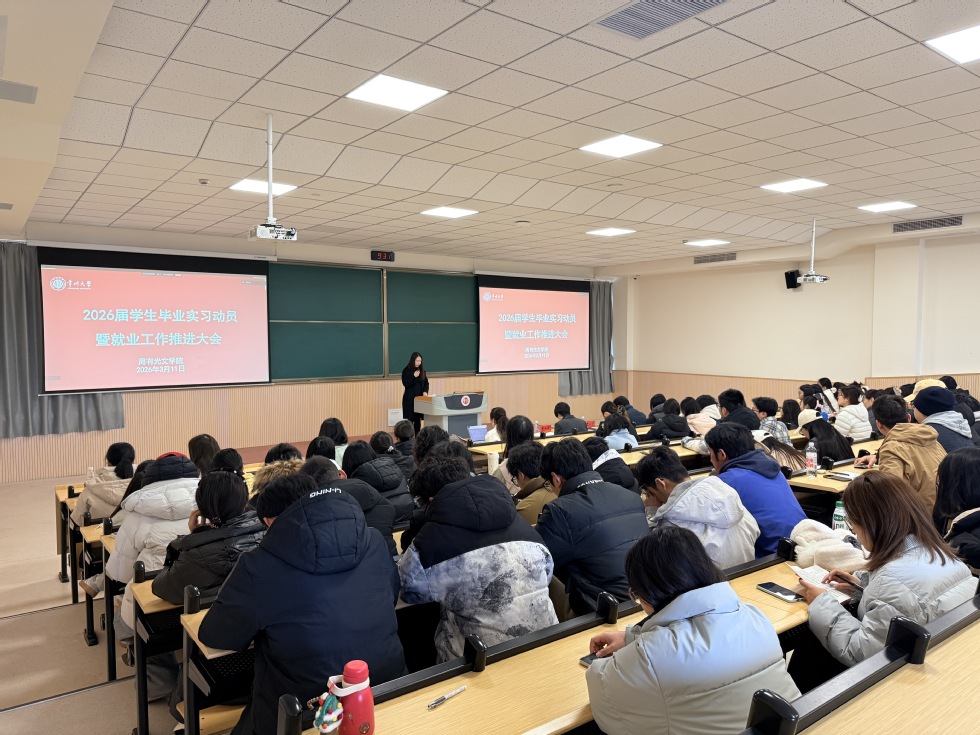 3月11日上午,88篮球直播 在立功楼八阶成功召开2026届学生毕业实习动员暨就业工作推进大会。学院党委书记焦洁庆、院长葛金华、院长助理董文康、专业负责人靳瑞芳、辅导员及全体2026届毕业生参加会议。会议由毕业班辅导员张燕红主持。