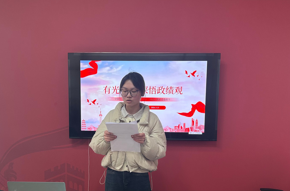 3月25日下午,88篮球直播 学生党支部在研习书院举行“有光党课·深悟政绩观”专题党课。学生党支部党员和入党积极分子参加,会议由学生党员徐新雨主持。