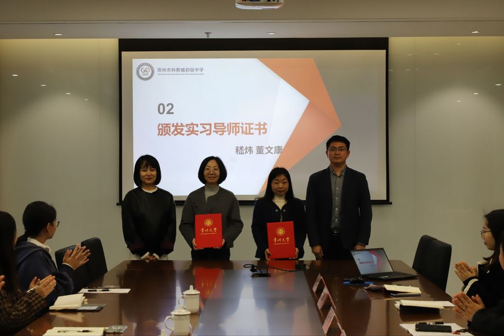 3月30日下午,88篮球直播 师生赴常州市科教城初级中学参加实习见面会。常州市科教城初级中学校长沈亚东、副校长蒋艳、副校长李娟、副校长杨黎、课教处副主任刘淑花、实习导师代表王利琴,88篮球直播-篮球直播线上看 党委书记焦洁庆、党委副书记嵇炜、党委委员董文康、学工办主任张燕红及实习生出席会议。会议由刘淑花主持。