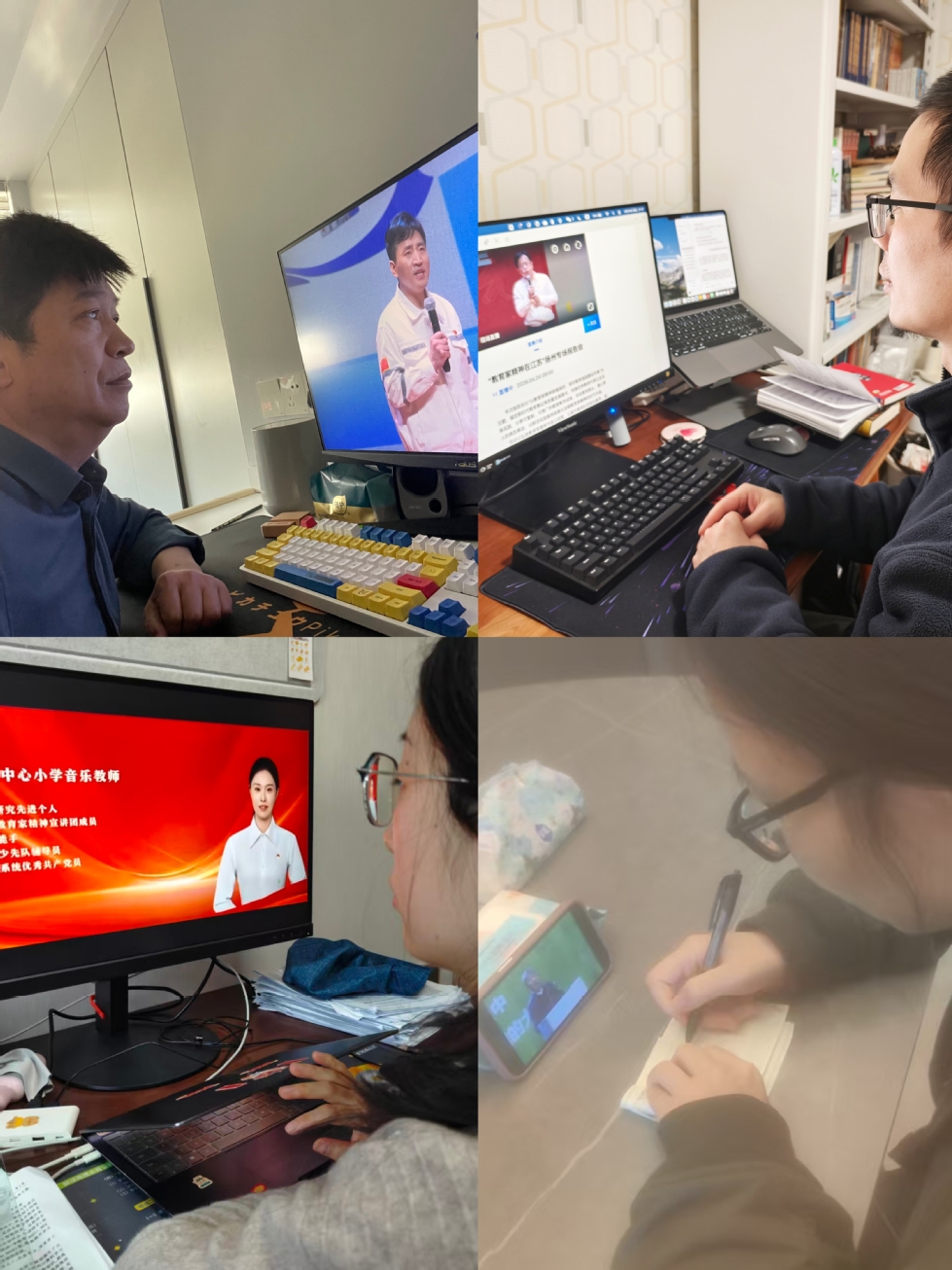 424日,文学院组织全体教师收看省教育厅在扬州市和泰州市举办的“教育家精神在江苏”专场宣讲会。本次学习采取“集中收看+个人学习”相结合的方式,覆盖全体教师,推动师德师风建设走深走实。